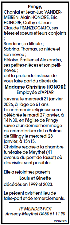 " Mes condoléances les plus sincères aux proches de "ma petite Christine". Elle laisse en nous un vide, une peine et une tristesse immense. Je n'oublierais jamais ta gentillesse, ton dévouement, ta loyauté, ta sincerité, ta sympathie, ta bienveillance et nos heures à parler de tout et de rien au téléphone (même le 24/12/25, avec tes conseils en matière d'emballage cadeau😊) Une amie de travail comme toi est precieux merci d'avoir été disponible pour me sortir de la galère les week end et me donner tes astuces pour que j'y arrive et j'espère avoir été une oreille attentive quand tu en avais besoin. Tu rejoins ton papa et ta maman et je souhaite qu'à présent tu sois apaisée...MERCI MA CHRISTINE TU ME MANQUES🕊 "