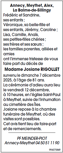 Déroulement des funérailles de Madame Josiane RIGOLLET