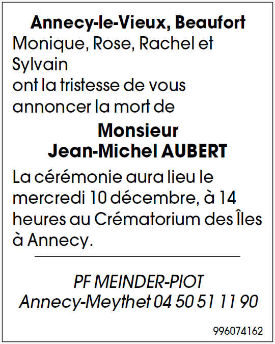 Avis de décès de Monsieur Jean-Michel AUBERT